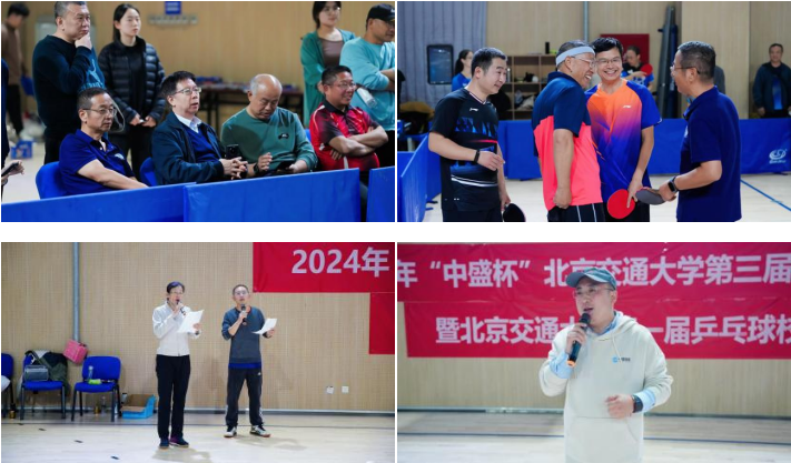 本次比赛由国产色情 工会、校体育运动委员会主办,校教工乒协、校学生乒协承办,国产色情 国土空间与交通协同发展研究院协办,安徽中盛轨道交通产业有限公司赞助。中铁电气化局原董事长、书记、总经理李爱敏,中铁国资党委副书记王彦飞,中铁北京局工管中心经理王浩,中国中铁人力资源部高级经理朱成亮,中铁电气化局乒协会长李盼龙,安徽中盛轨道交通产业有限公司董事长闫帅帅,国铁集团直属机关乒协主席王宾,国产色情 副校长赵鹏,校研工部部长高永峰,校体育部主任崔迎春,校工会副主席徐丽,离退休处处长徐民,国产色情 韩宝明教授,国产色情 副书记、副院长、校教工乒协主席陈军华,校教工乒协秘书长杨方出席活动。体育部王利利担任裁判长、体育部张华庆任副裁判长。