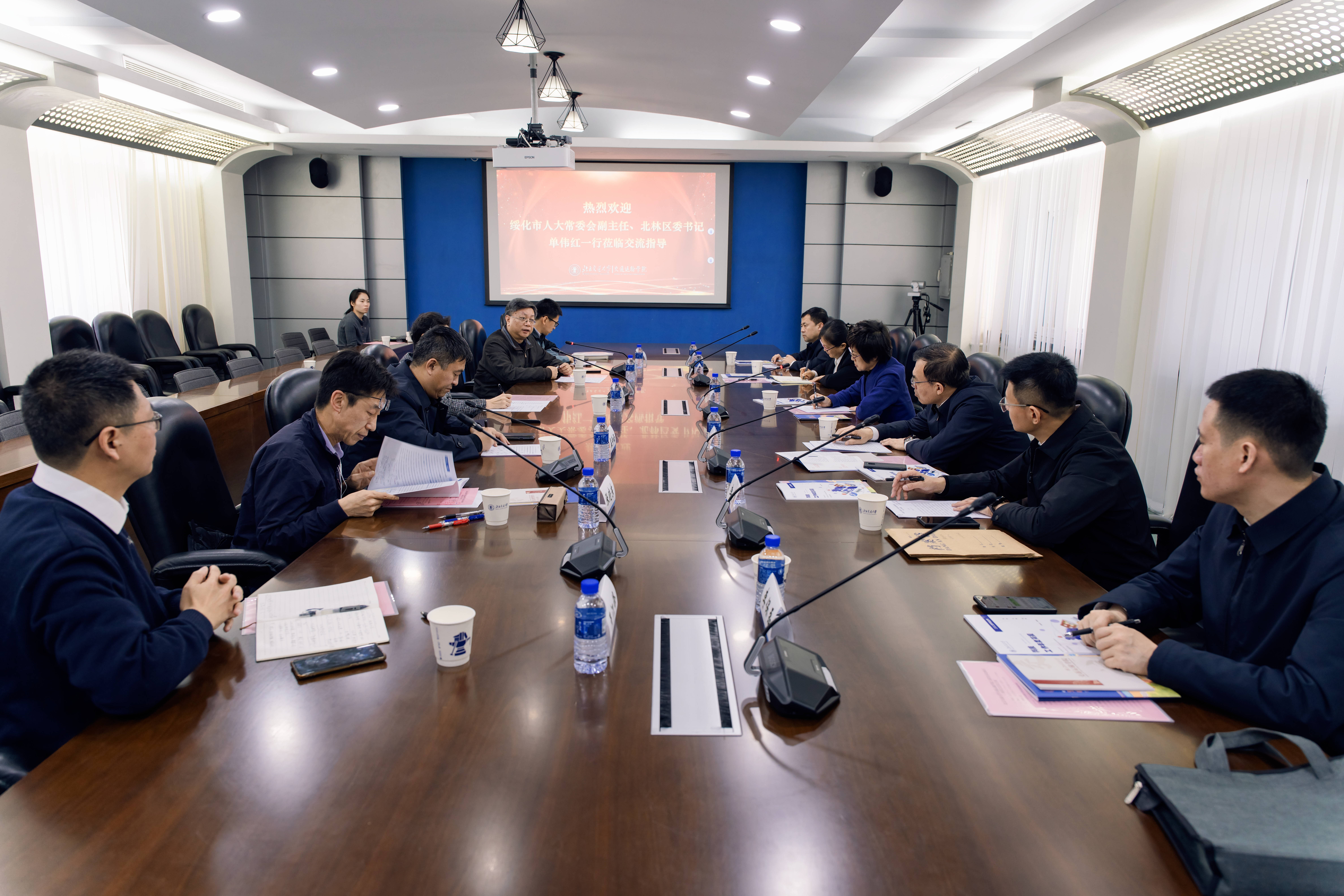 2025年11月10日上午,黑龙江省绥化市人大常委会副主任、北林区委书记单伟红一行来访,李国岫副校长亲切会见了单伟红一行。