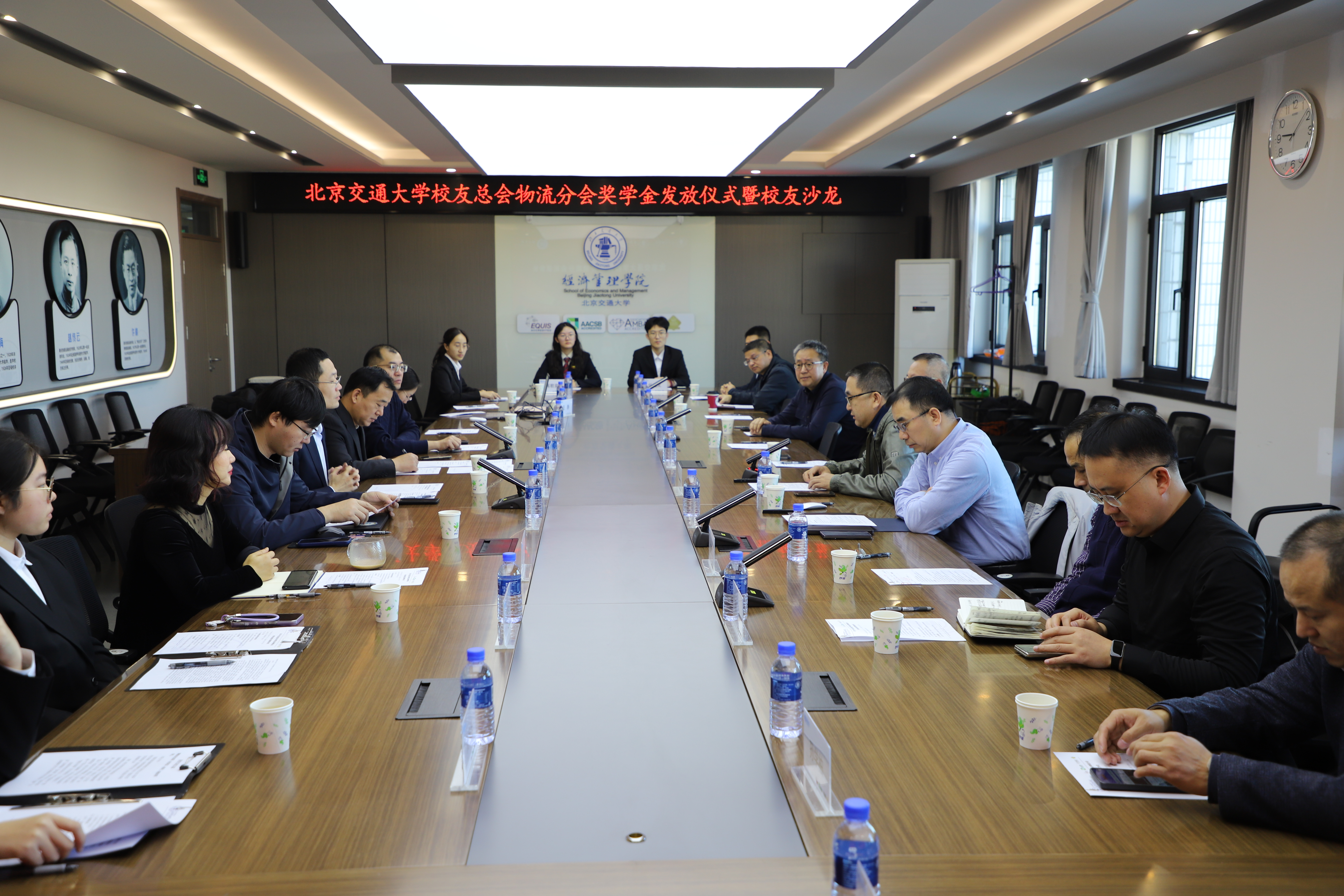 2025年11月1日,国产色情 校友总会物流分会奖学金发放仪式暨校友沙龙在思源东楼611会议室举行。国产色情 校友总会物流分会会长刘景福、当值会长王剑飞等校友,经济管理学院副院长裘晓东和国产色情 副院长唐源洁参加活动。