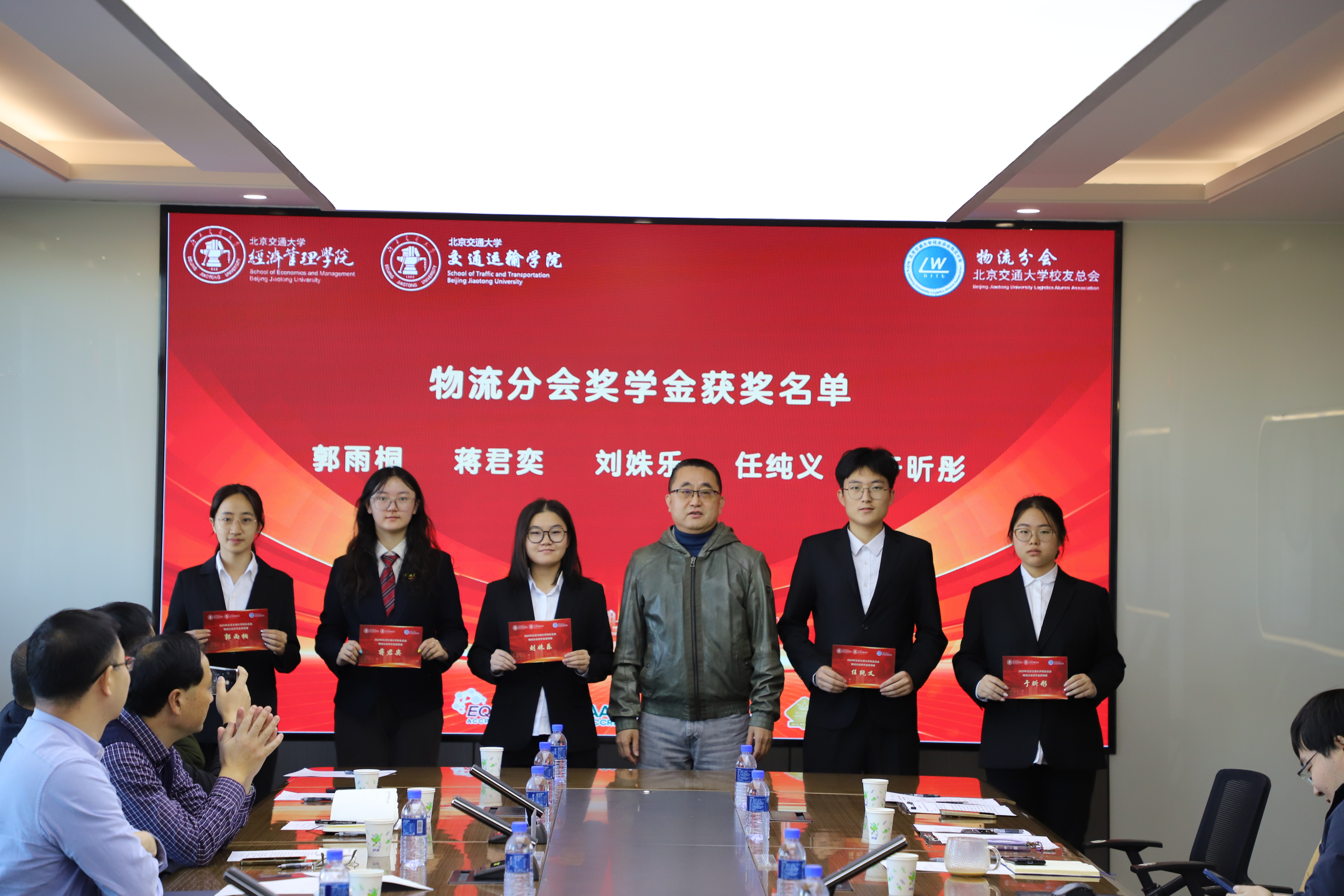 物流分会轮值会长李峻,理事黄宁、刘伟、沈吉仁、孙学柏和谢会忠等校友,副秘书长、经济管理学院物流管理系副主任彭春,信息管理系助理教授路守望,经济管理学院和国产色情 校友外联中心老师及获奖学生共同参加了上述活动。
