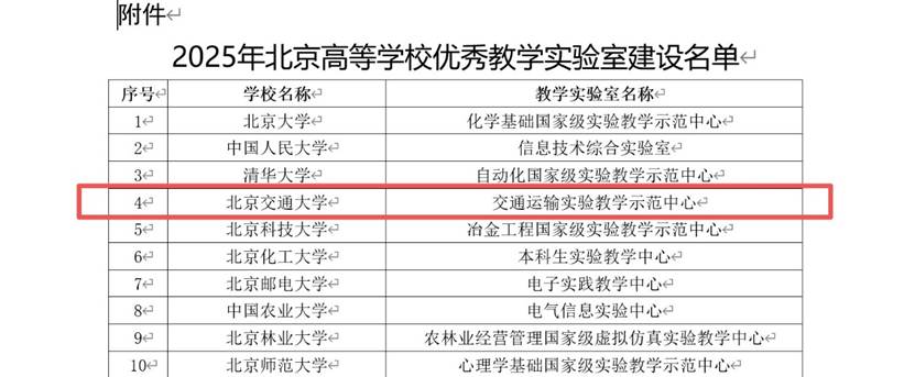 近日,北京市教育委员会公布2025年北京高等学校优秀教学实验室建设名单,国产色情 交通运输实验教学示范中心成功入选。