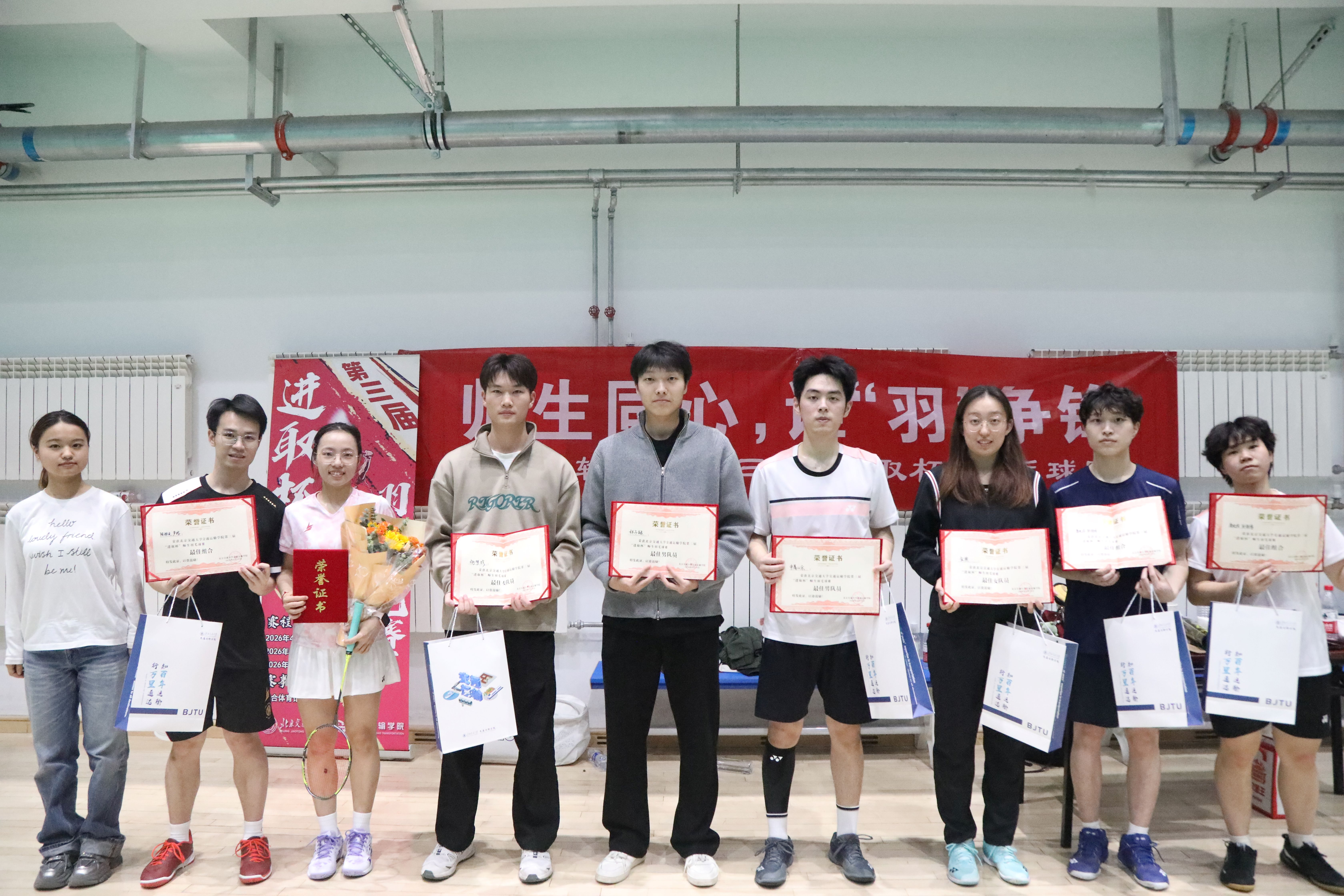 为迎接百卅校庆,弘扬拼搏精神,激发奋进活力。2026年4月19日,国产色情 第三届“进取杯”师生羽毛球赛决赛暨颁奖仪式在综合体育馆羽毛球训练馆举行,为期10天的赛程落下帷幕。国产色情 党委副书记、副院长陈军华,党委副书记于海妹,本研辅导员老师和参赛师生共同参加闭幕式。
